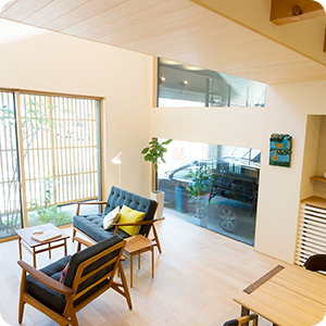 広く開放的なリビング、大空間のガレージを叶えることができるSE構法。