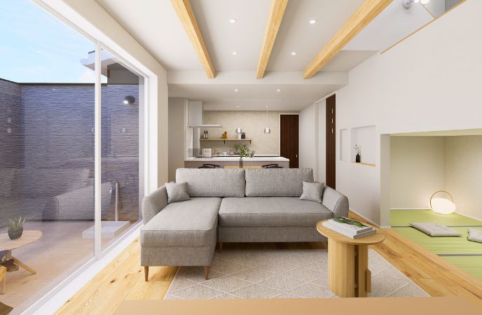 【大野城市】「化粧梁×折上げ天井」立体的な広がりでゆとりあるLDKの家