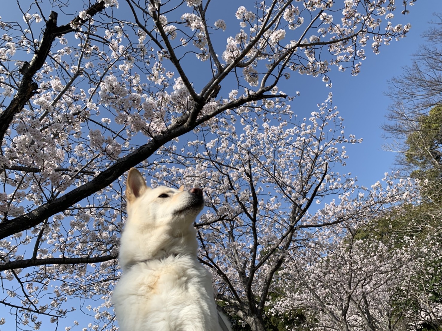 我が家の愛犬と花見