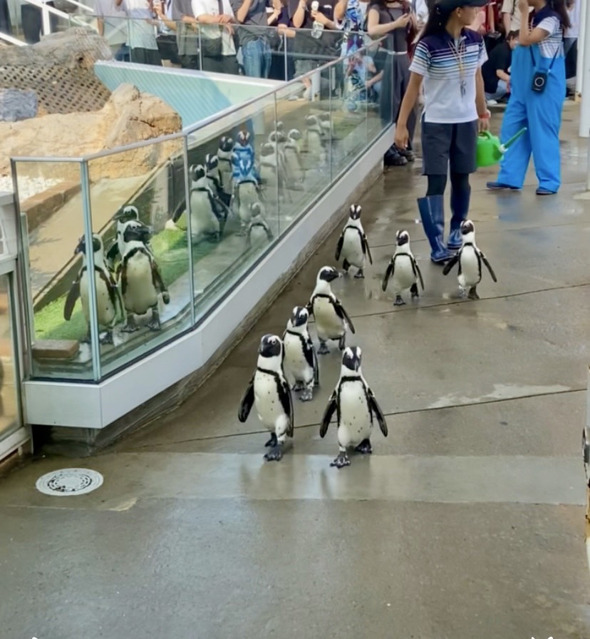 超越したイルカのジャンプ、丸いフォルムながらもすいすい泳ぐアザラシ、ひょこひょこ歩く姿か愛らしいペンギンを見てワクワク、ワクワクから元気をもらってます。