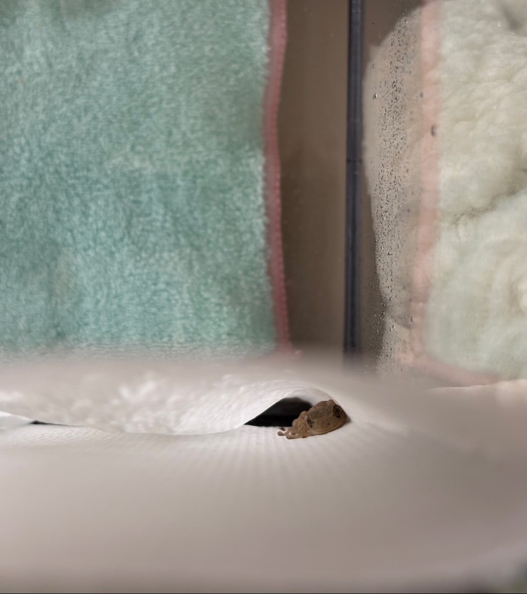 そして3匹目は、少し特殊な出会いでした。 冬の寒い日、玄関先で丸くなって動けなくなっていたヤモリを保護。変温動物にとって冬の寒さは命取り…ということで、そのまま「強制的に(笑)」我が家の一員に!