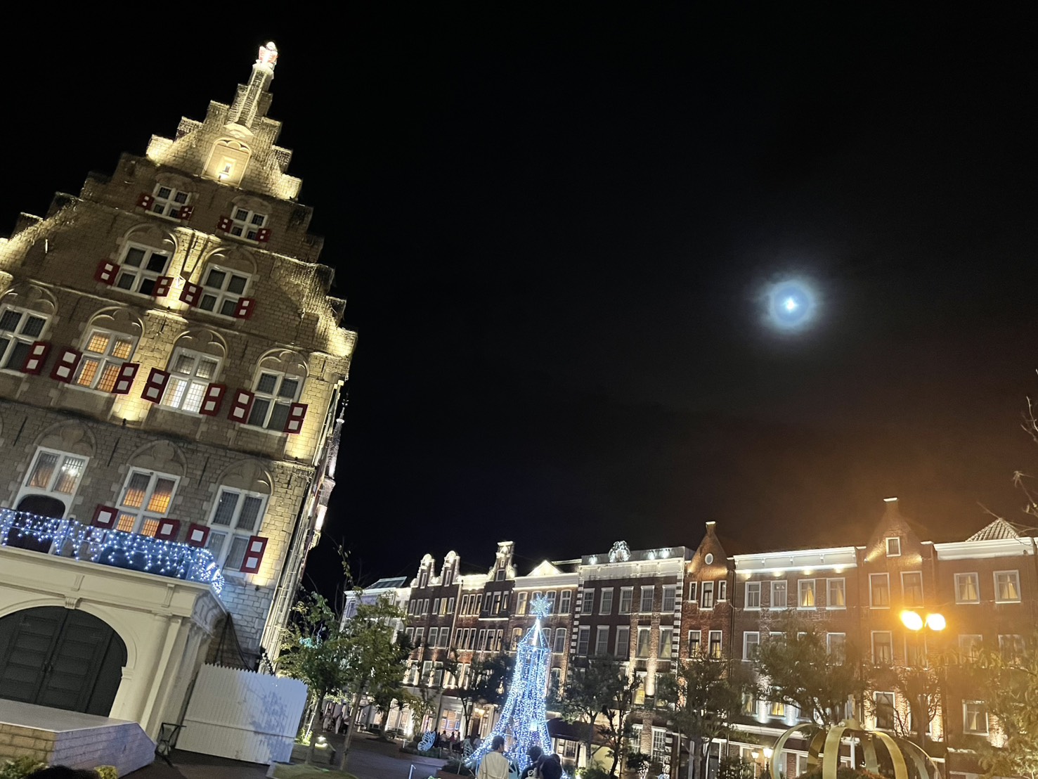 ハウステンボスの夜は、イルミネーションが綺麗で多くの観光客が眺めていた。