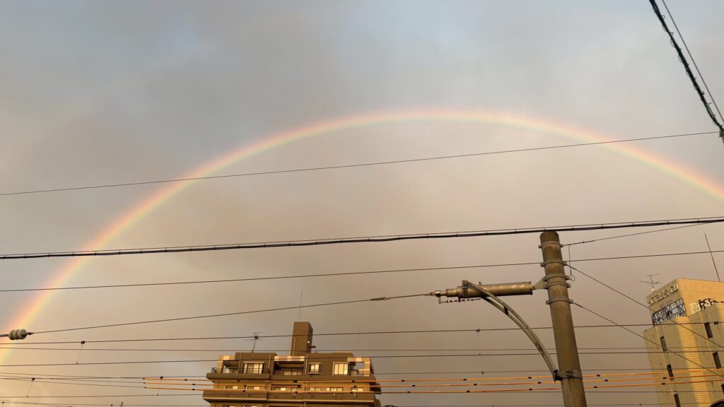 ほぼ虹(Rainbow)です。ほぼ半円の虹はめずらしい。
