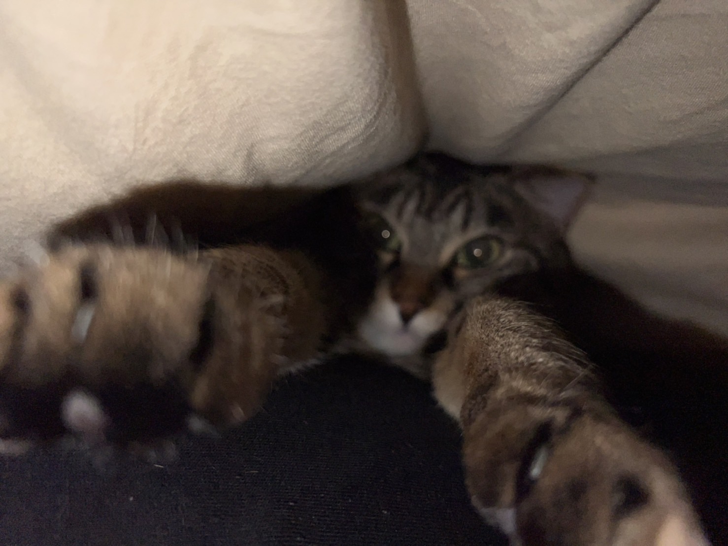 大野城展示場の辰本です。 我が家の猫「クク」は怠け者でいつも寝ています。 唯一起きている時間は夜中で、たまに寝ている私にとびかかってきたり、嚙みついてきます。 迷惑ですが可愛いです。