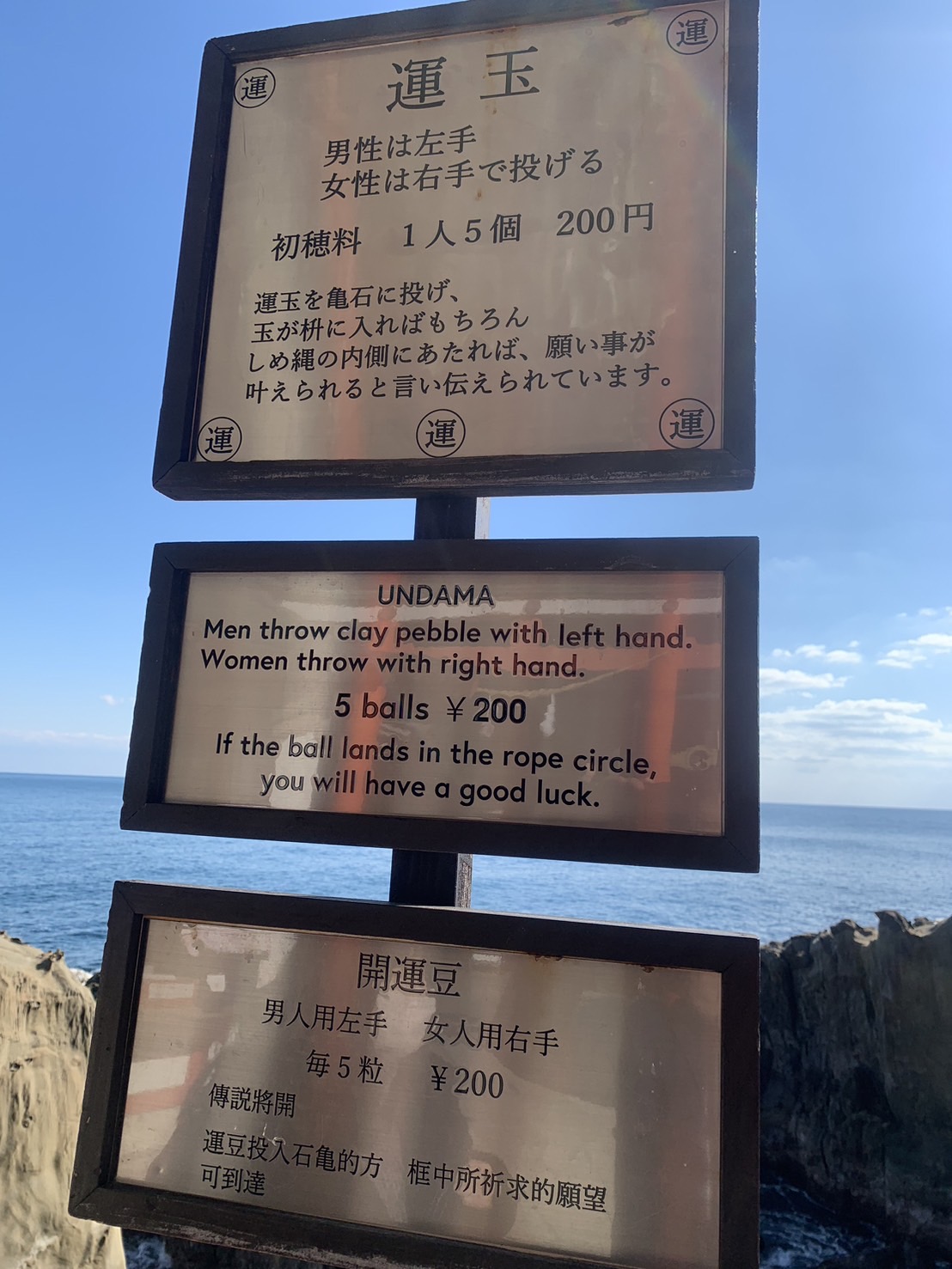 結果、見事に僕も妻も運玉が枡の中の水たまりに入りました(^^♪