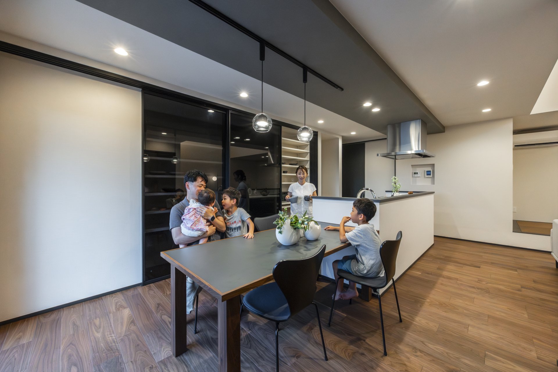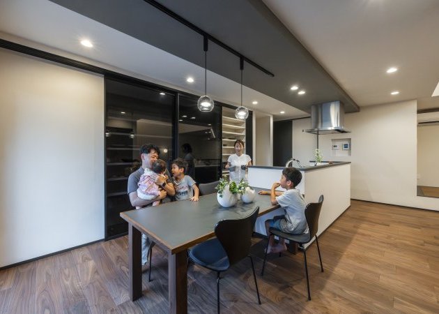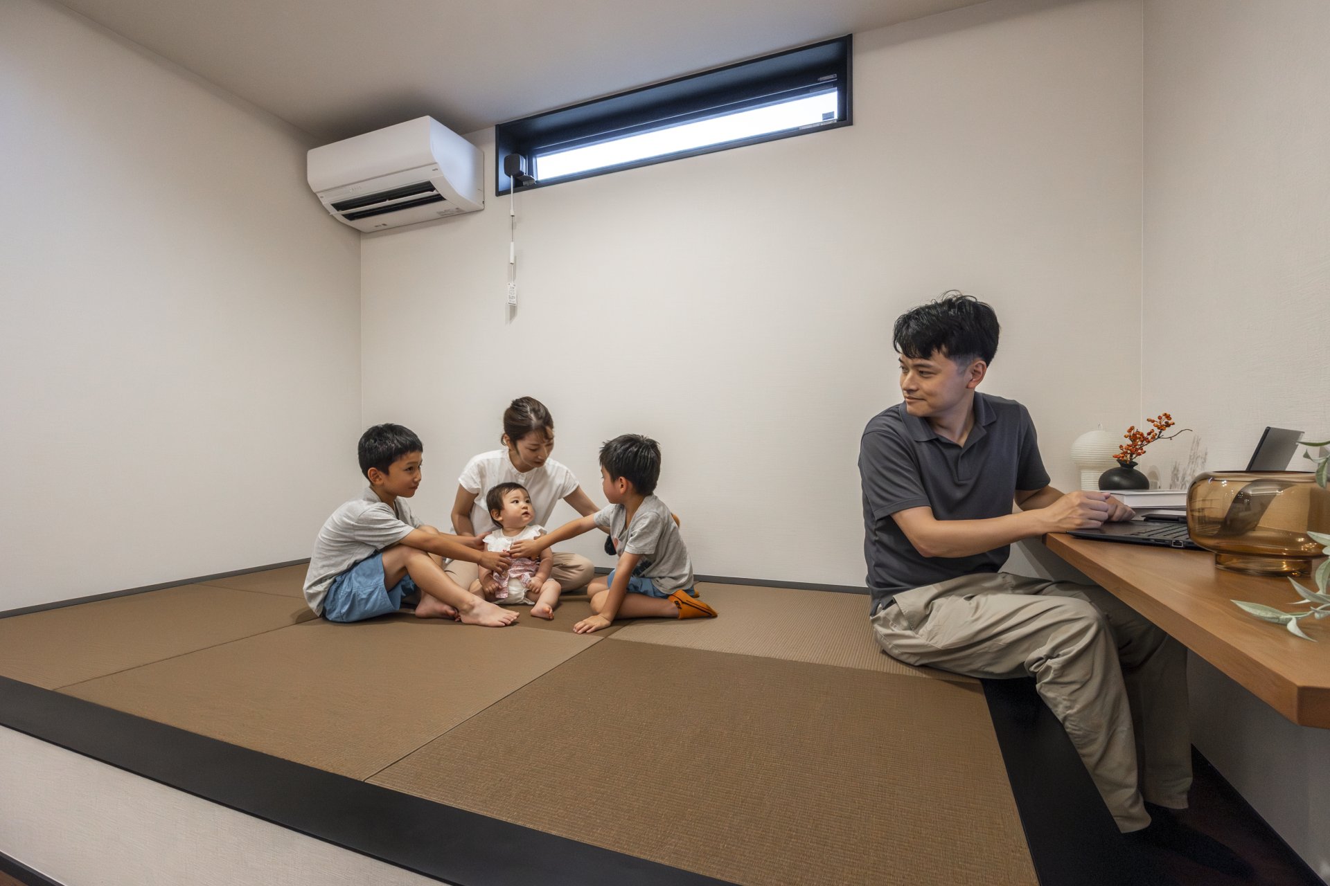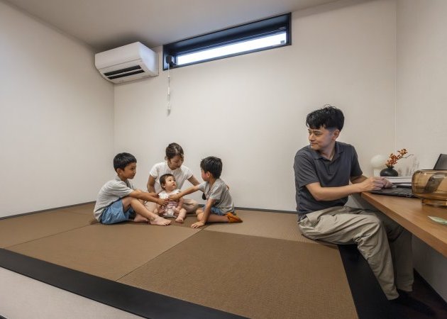 くつろぎの空間:リビングとひと続きになった小上がり和室は、お子様の遊び場やご夫婦の憩いの場として多目的に活躍します。