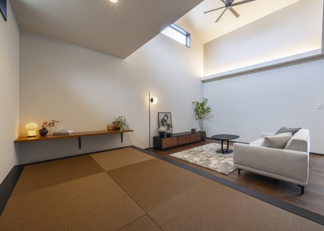 勾配天井の開放的リビングと小上がり和室が魅力!上質な平屋邸宅