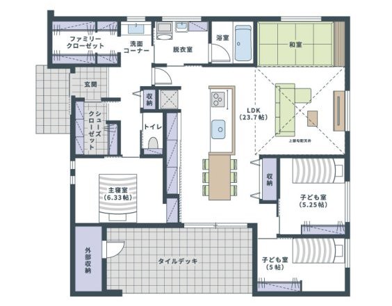 ワンフロアの快適さ:階段の上り下りがない平屋は、将来にわたって安心で家事動線もスムーズです。