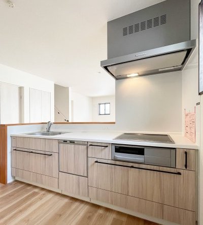 - キッチンはタカラスタンダードを採用。キッチンパネルはホーローなので油汚れに強く、お掃除が楽に!浄水器付内蔵ハンドシャワーは水の無駄使いをカットしてくれます。コンロは2口IHヒーター+ラジエントヒーターの3口。IHなので日々の吹きこぼれお掃除が簡単です♪