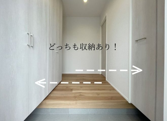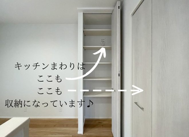 ・玄関横、パントリー、階段下収納と収納充実!
