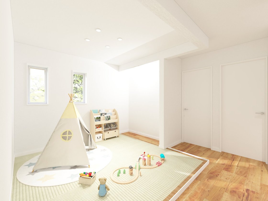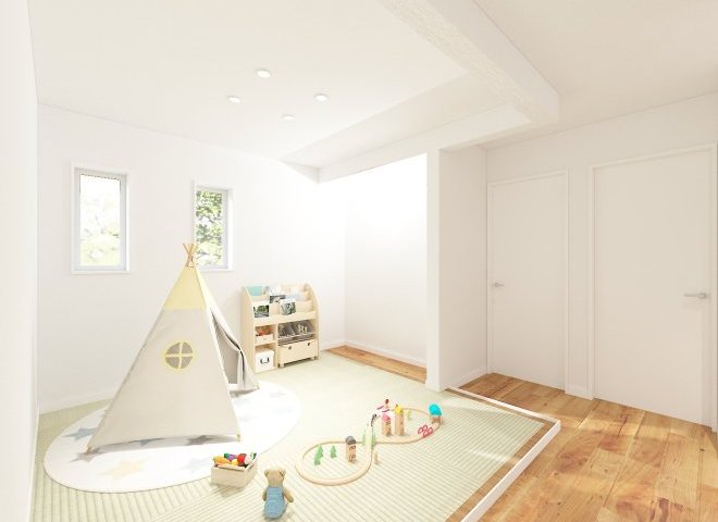 多彩な空間活用:2階のオープン和室はお子様の遊び場や客間に。