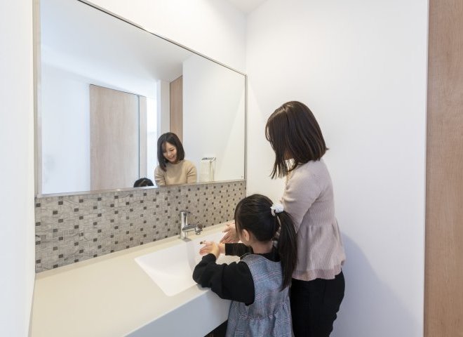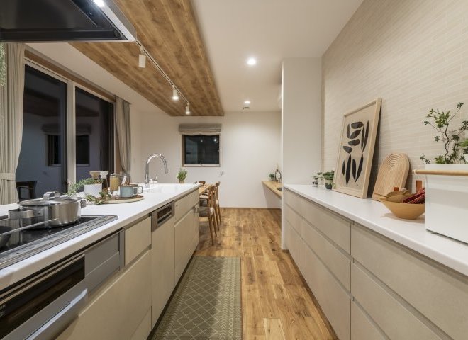 - キッチンはタカラスタンダードを採用。キッチンパネルはホーローなので油汚れに強く、お掃除が楽に!浄水器付内蔵ハンドシャワーは水の無駄使いをカットしてくれます。コンロは2口IHヒーター+ラジエントヒーターの3口。IHなので日々の吹きこぼれお掃除が簡単です♪