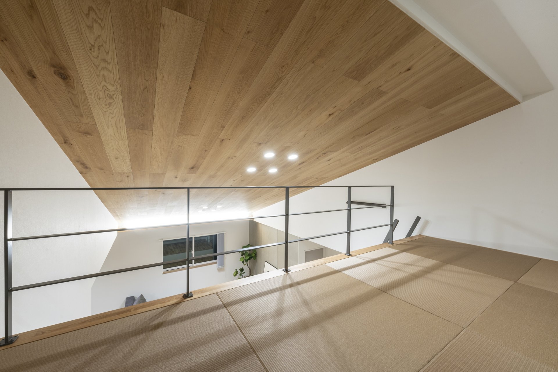 また、スキップフロアを上がると広々とした秘密基地のようなロフトが広がり、窓を備えたタタミ敷きの空間は、収納やリラックスの場として利用可能です。
