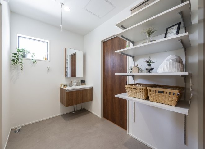 - 自動的に家の空気を循環させることができる24時間換気システムを設置しています。給気は室内との圧力差で自然の外気を取り入れ、排気は強制的に行う『排気型』という方式で換気を行っており、電力を使う『熱交換型』に比べランニングコストを節減できる換気システムです。
