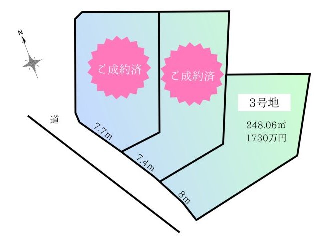 | 接道 | ●南西 幅4.5m 公道 接道7.4m~8m | ||