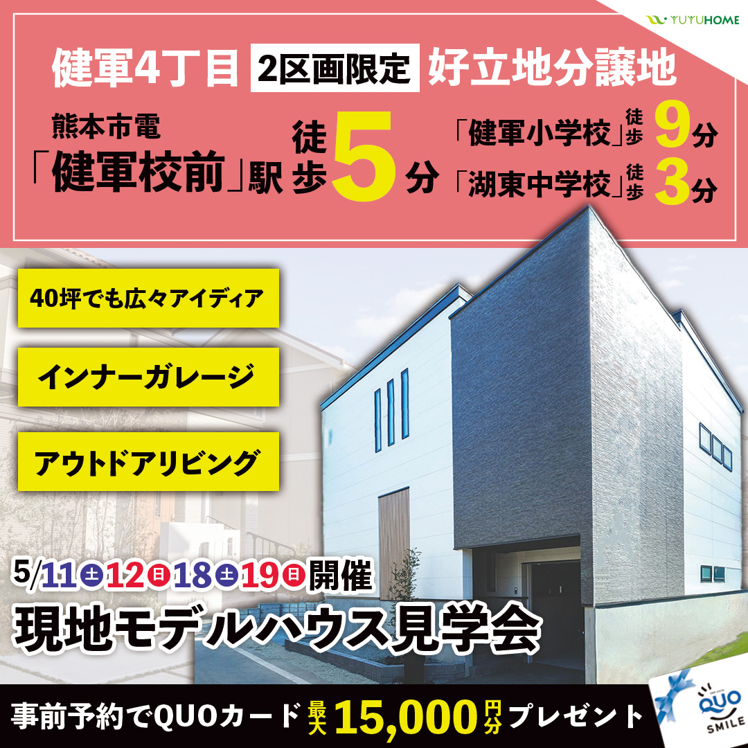 【熊本市東区健軍4丁目】分譲地モデルハウス見学会<最大15,000円の特典付>