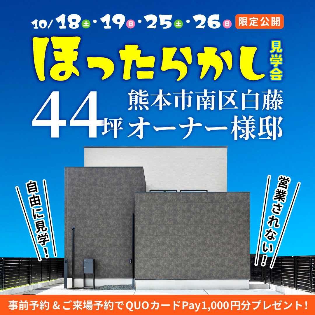 【熊本市南区】分譲地内に建てた44坪5LDKオーナー様邸「ほったらかし」見学会