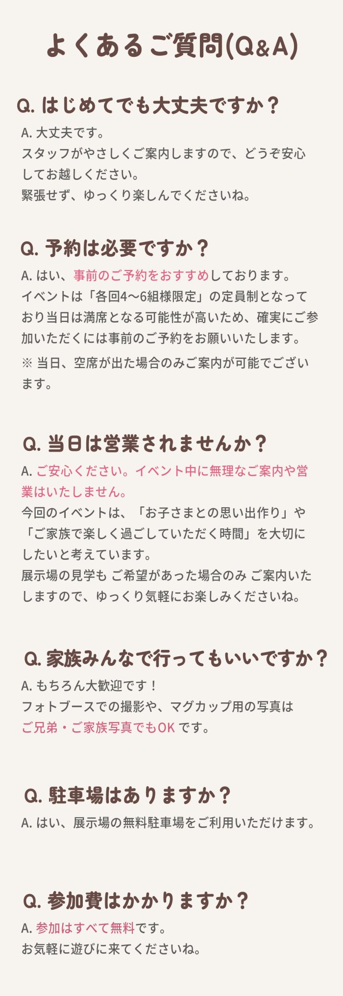 | 時間 | 【各回先着】10時/11時/12時/13時/14時/15時 |