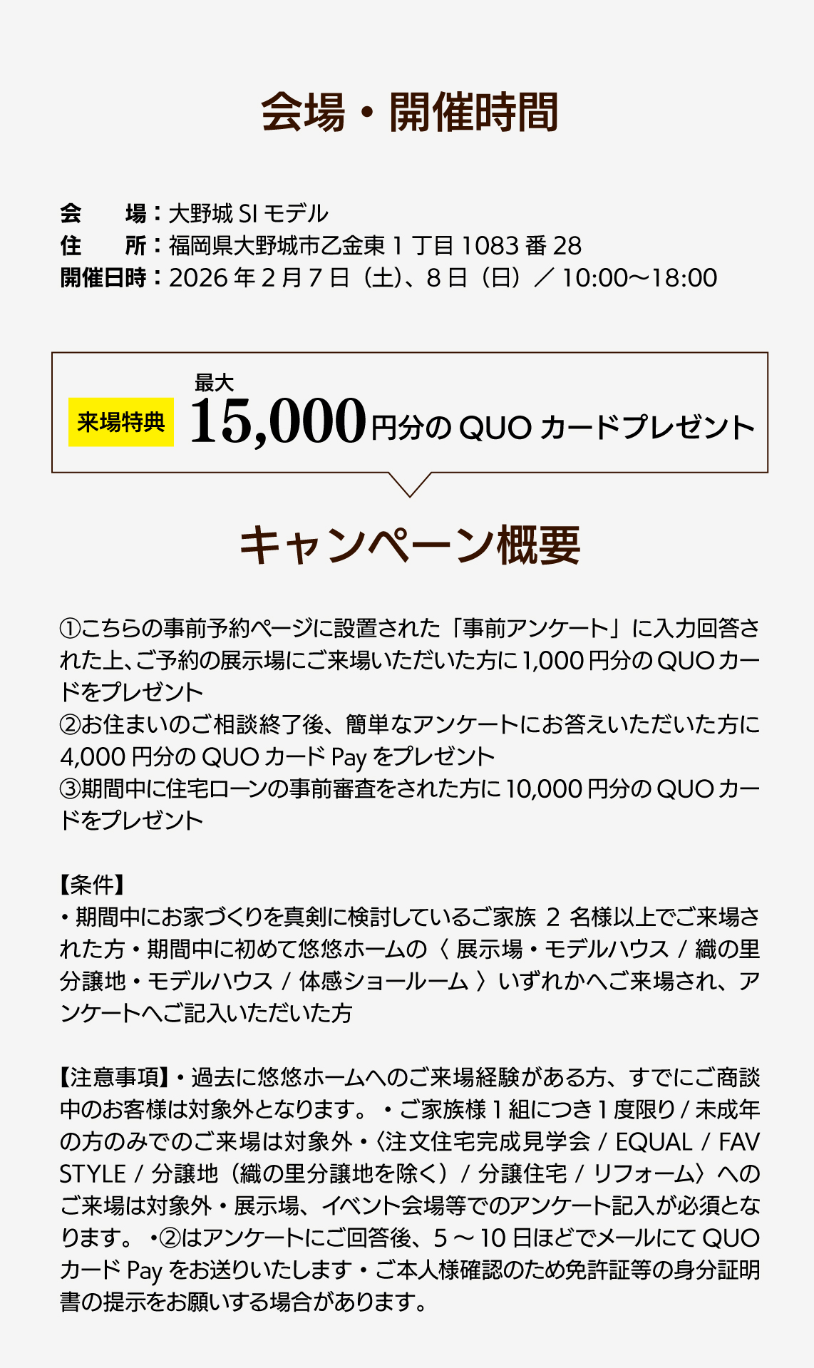 | 場所 | 福岡県大野城市乙金東1丁目16-21|大野城SIモデルハウス |