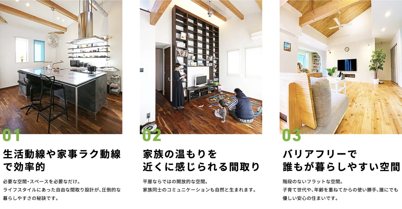 ご家庭ごとのライフスタイルにあった平屋づくりをお手伝いします!