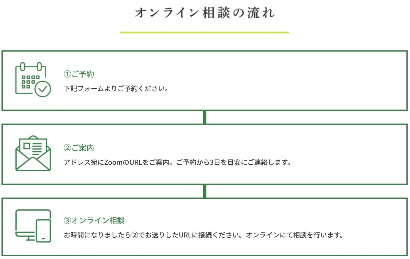※オンライン相談会はZOOMを使用いたします。通話品質向上のため録画させていただきますのでご了承ください。