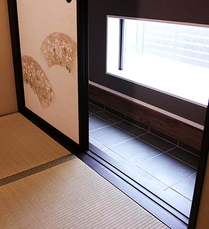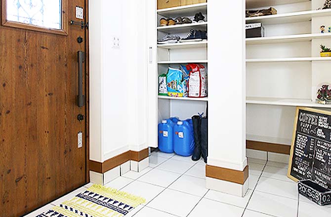 土間とは、玄関からそのまま室内へと続く土足で出入りをするための、