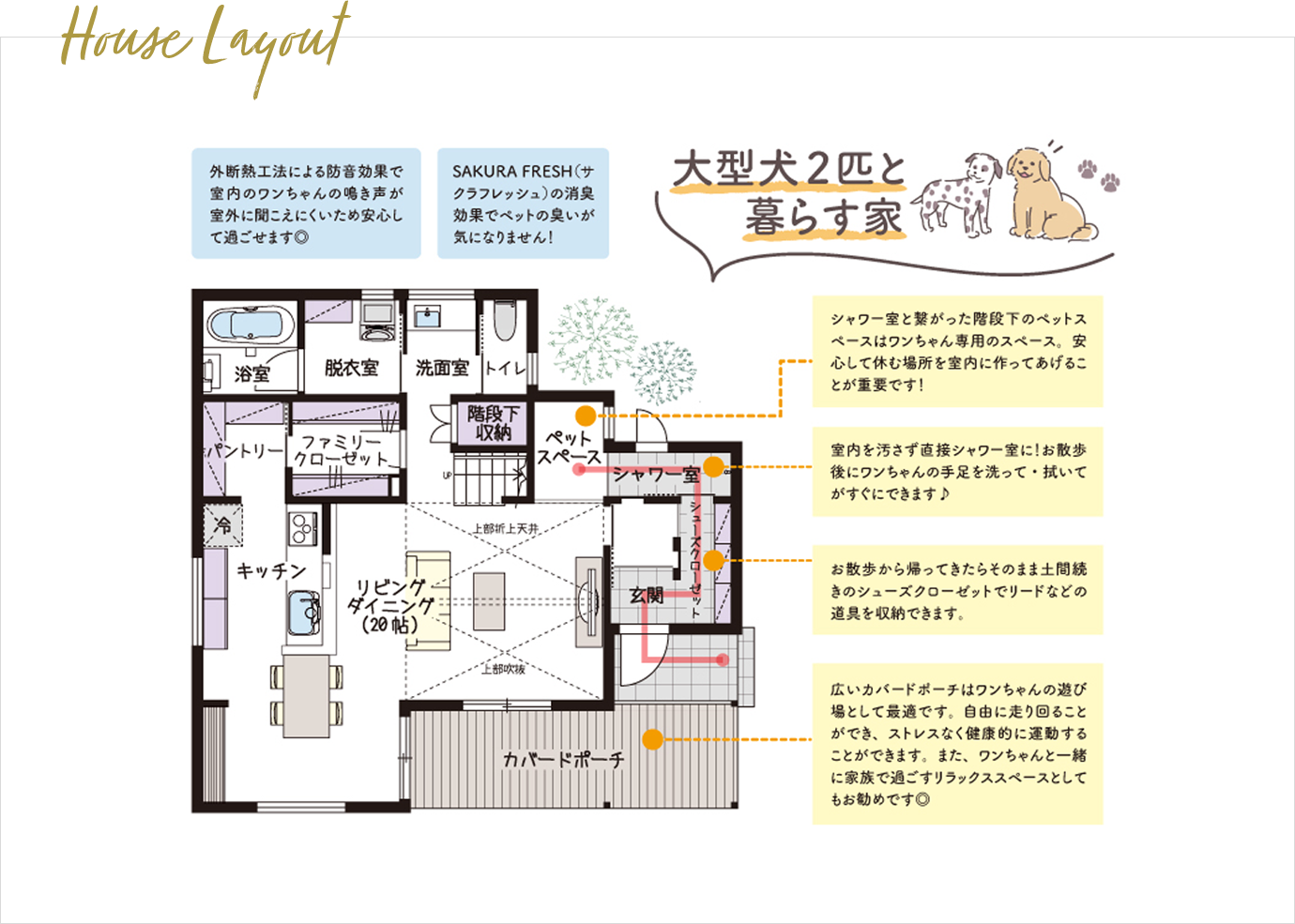 家族同然のペットたちと快適に暮らすライフスタイル。
