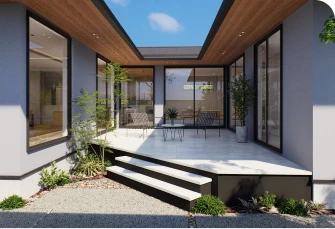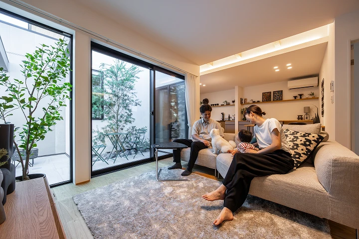 中庭のある開放的な平屋で、家族とのつながりと自然の心地よさを大切にしたい。