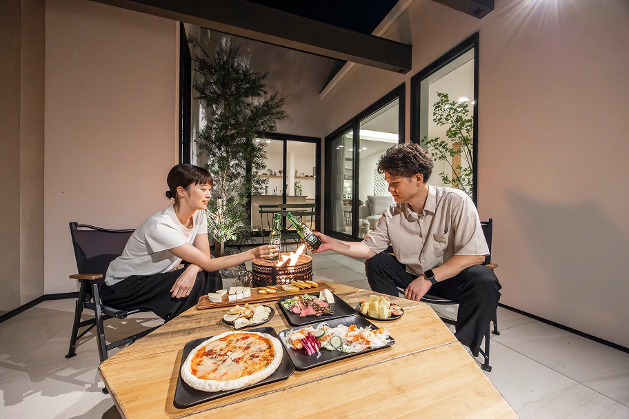 アウトドアが楽しめるバルコニーで家族団らん。