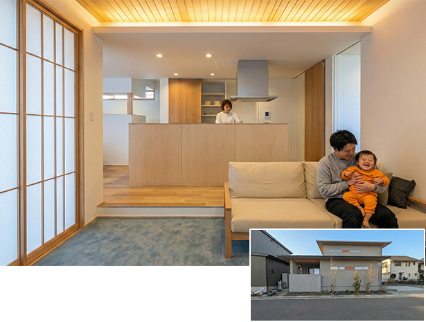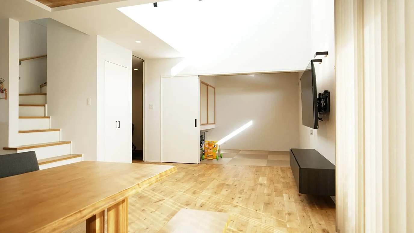 やわらかな光、無垢の床のぬくもり、ほどよく家族がつながる空間。