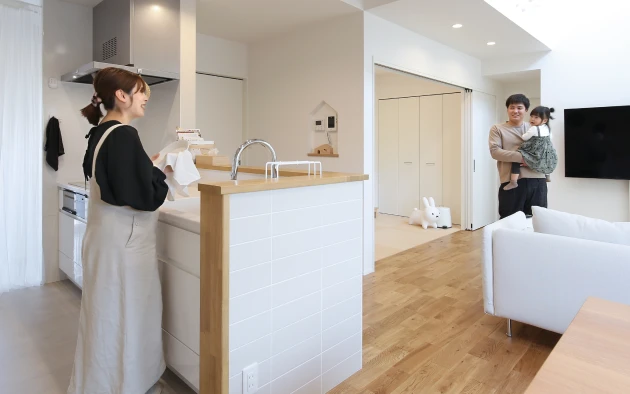 日常の慌ただしさを癒してくれるリビングと快適な動線で家族の仲が深まる空間を演出。