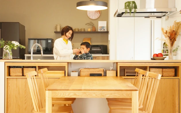 料理も食事も楽しくなるアイランドキッチンや、時短を叶える家事動線で家族との時間をたっぷり確保。