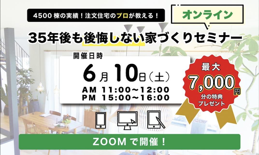 【6/10(土)開催】35年後も後悔しない家づくりセミナー/ZOOM開催