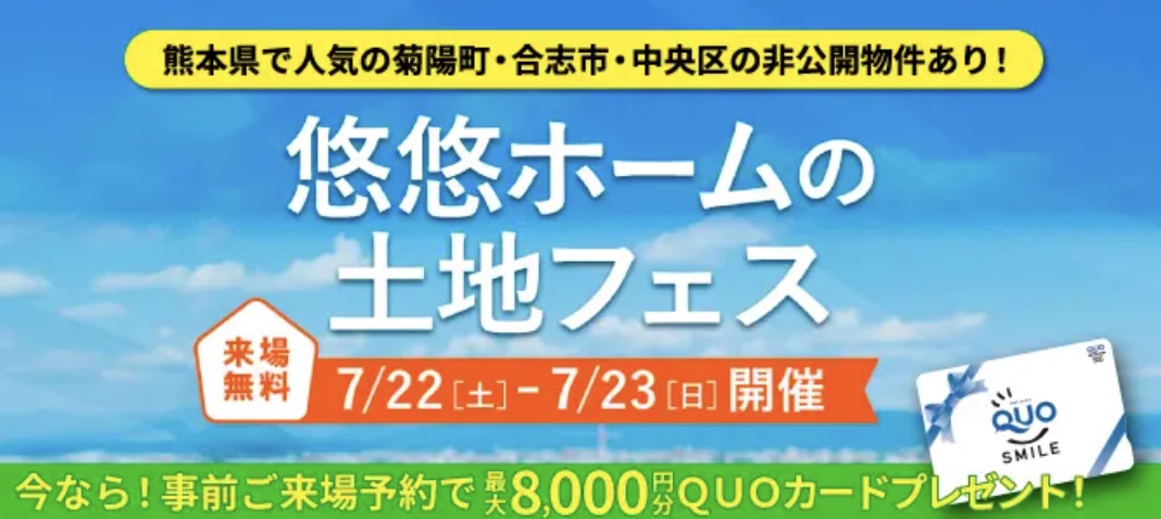 【土地フェス開催】7/22・23で熊本県の人気エリア、非公開物件情報を差し上げる土地フェスを開催します!