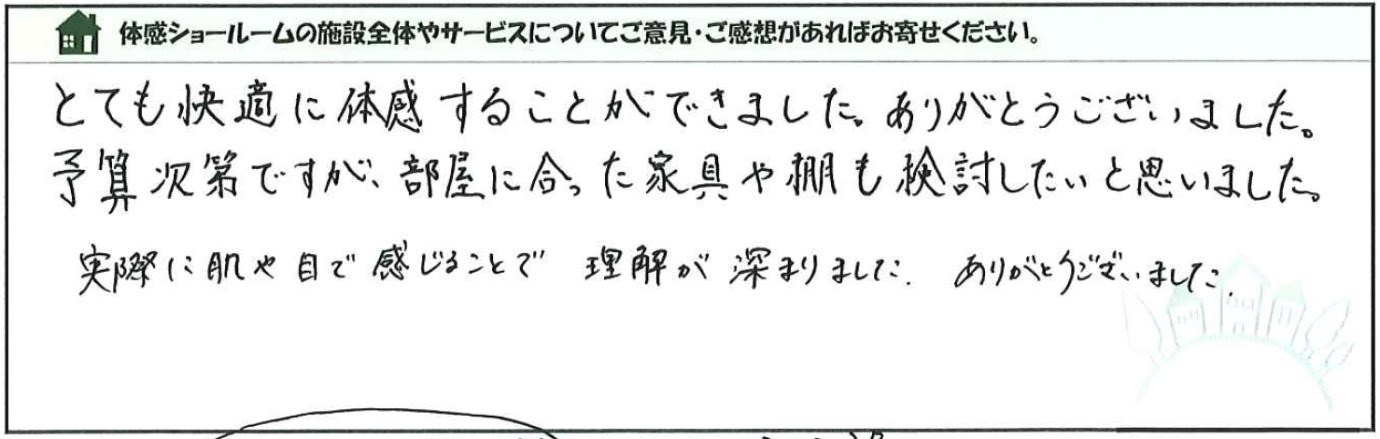 【お客様の声53】体感ショールームにご来場いただいた皆様より頂戴した声をご紹介します!