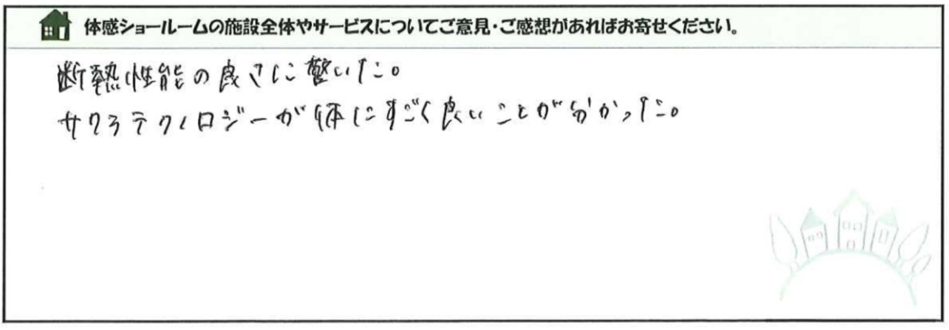【お客様の声84】体感ショールームにご来場いただいた皆様より頂戴した声をご紹介します!