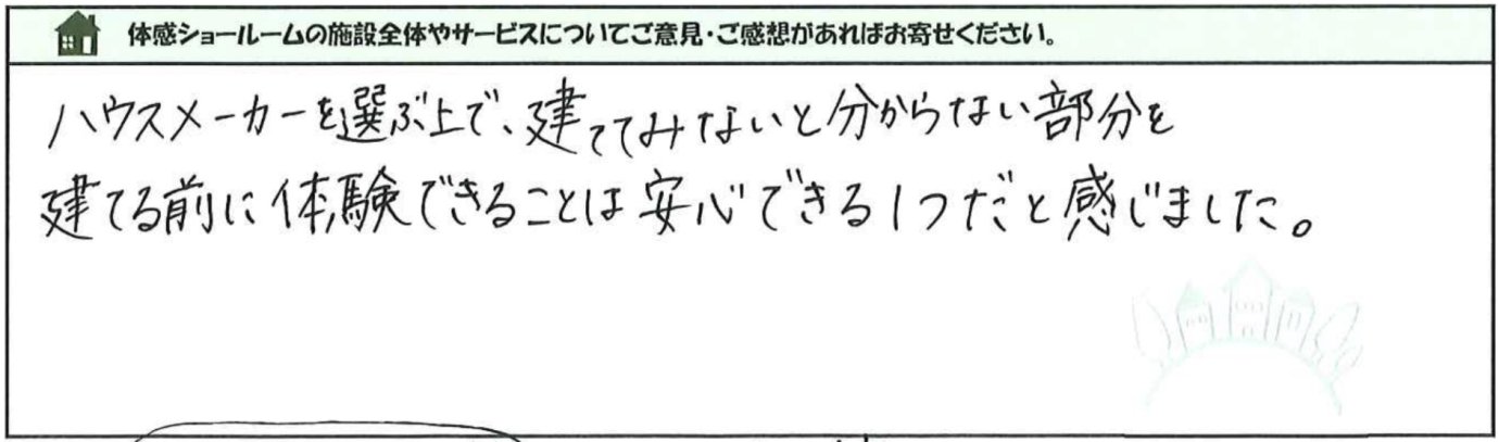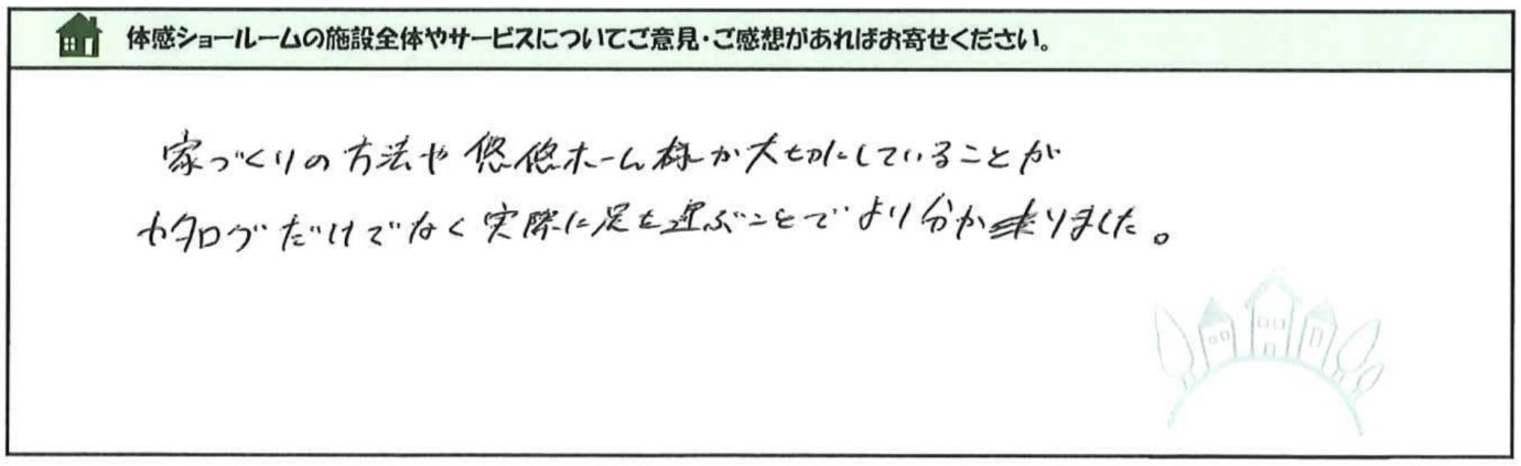 【お客様の声137】体感ショールームにご来場いただいた皆様より頂戴した声をご紹介します!