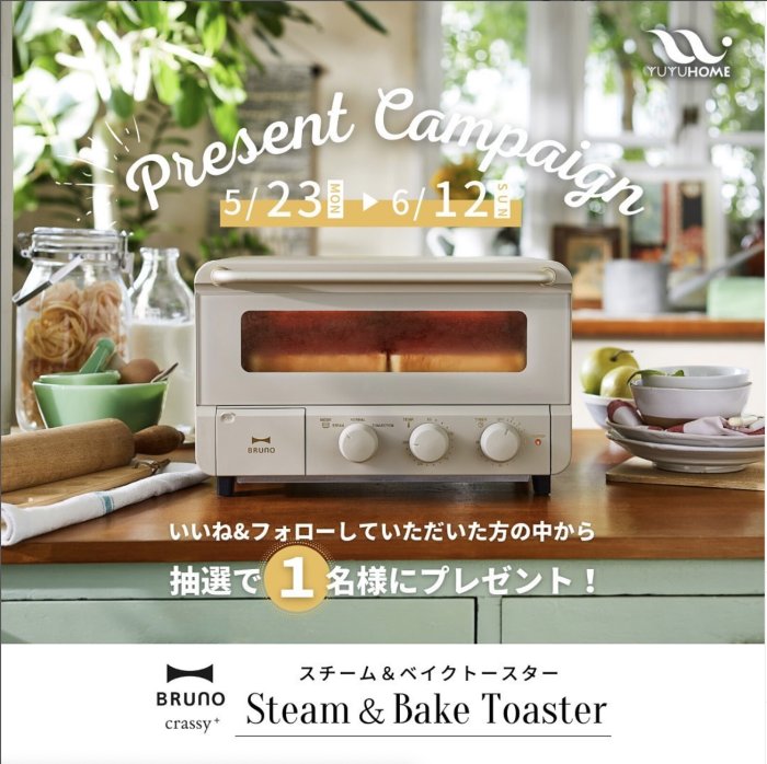 【プレゼント企画】Instagram「いいね&フォロー」で「BRUNO スチーム&ベイクトースター」を当てよう!〜6/12(日) まで〜