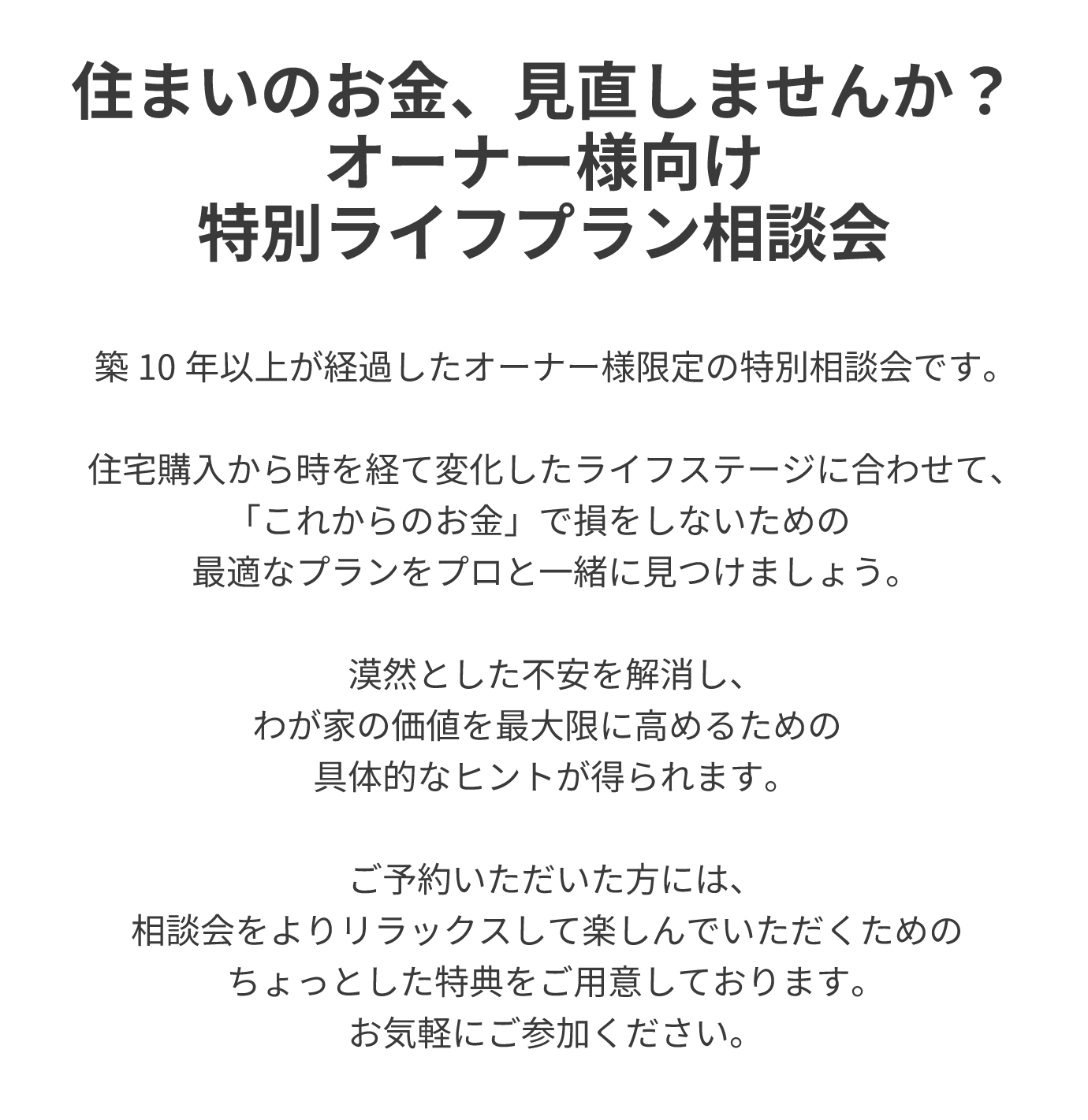 築10年以上の家を活かす!お金のプロが教える「損をしない」ライフプラン相談会
