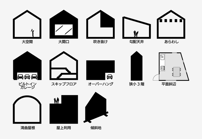 小屋裏収納やロフトはもちろん、リビング階段や吹き抜け、勾配天井など家全体を広々と活用することができます。