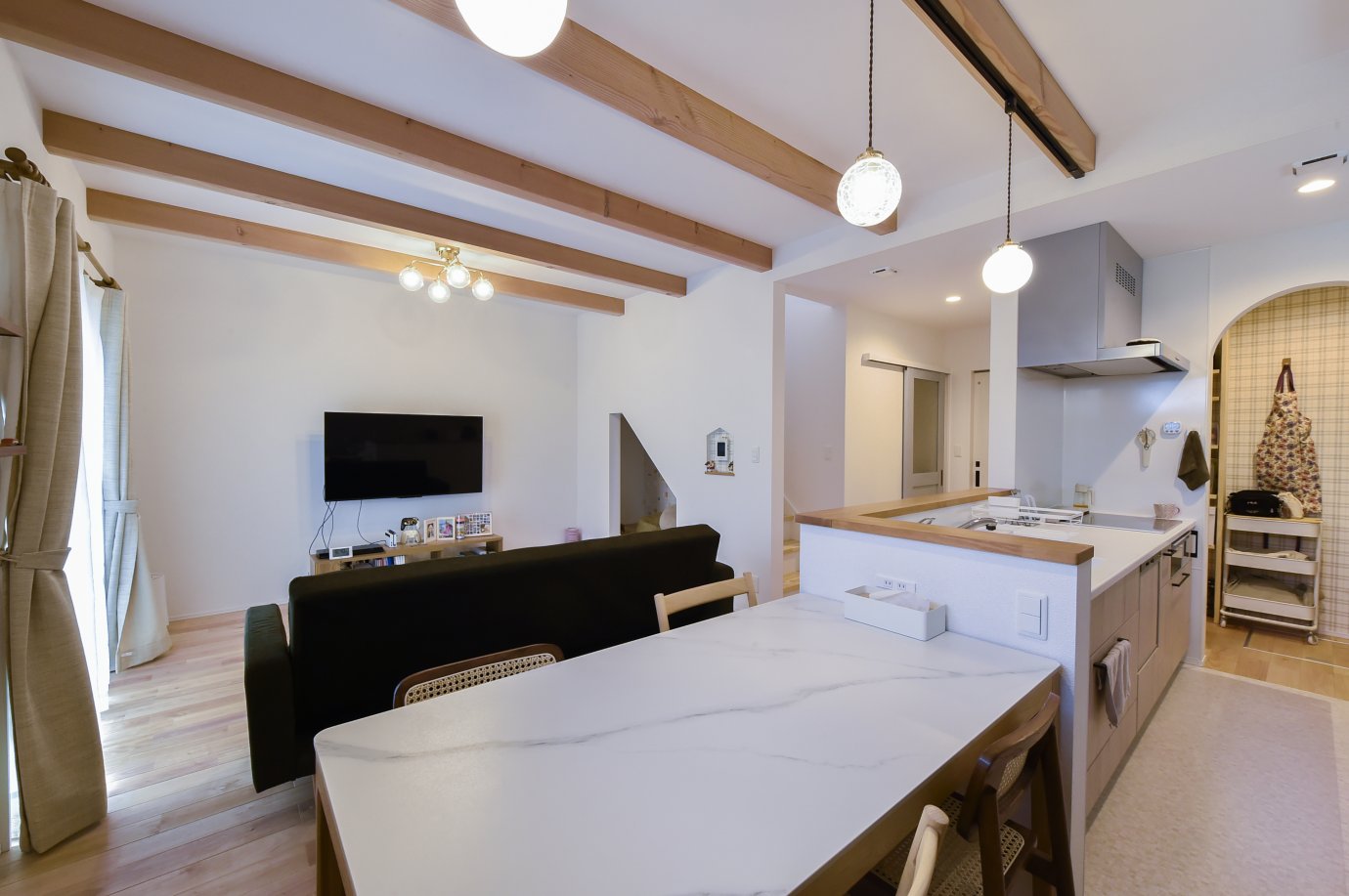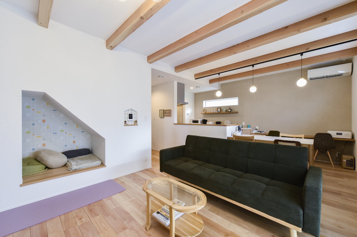 現し梁やニッチ、階段下を活用したヌックなど、オリジナリティを大切にした家づくりとなっています。