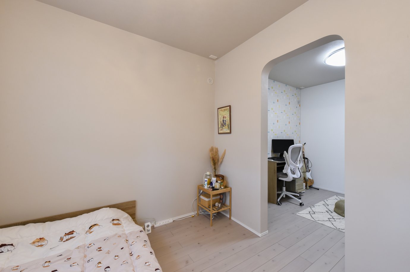 寝室の横には、角丸のアーチがかわいい夫婦共有のフリースペース