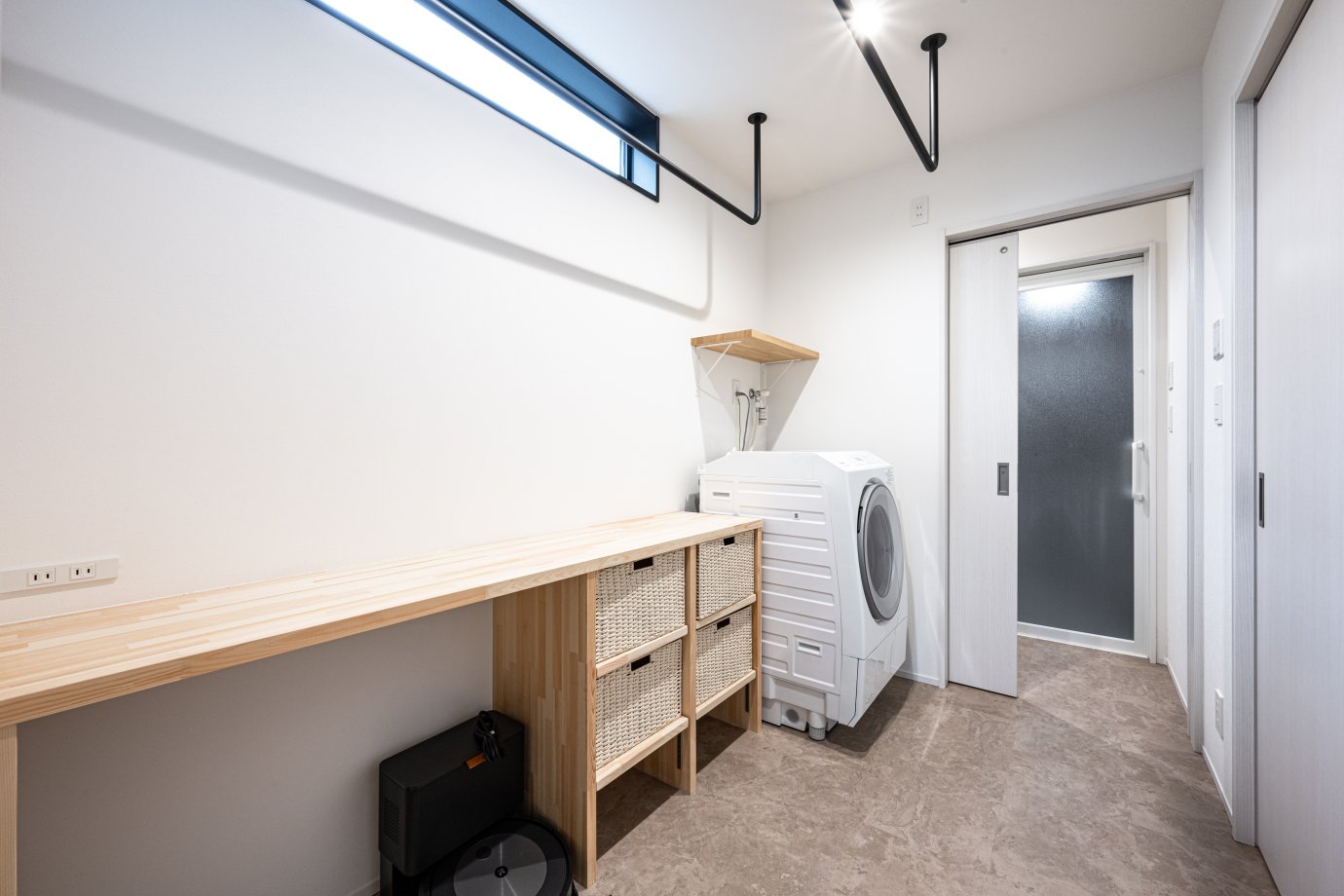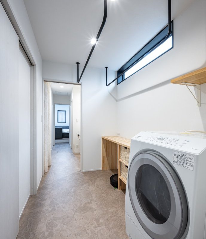 洗う・干す・畳む・仕舞うという洗濯一連の作業に加え、アイロン掛けまでできるランドリールーム。脱衣室と分けているので、家族の入浴中も気兼ねなく使えます◎