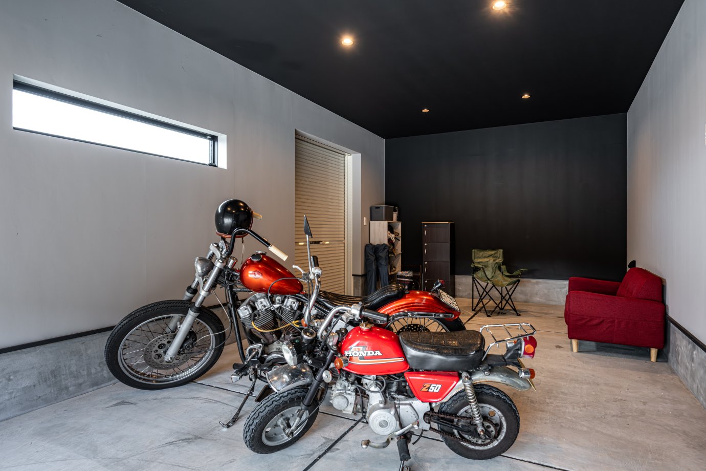 「大好きなバイクを最高の状態で保管したい」というオーナー様の熱い想いと、設計担当からの機能的な提案をバランスよく融合。