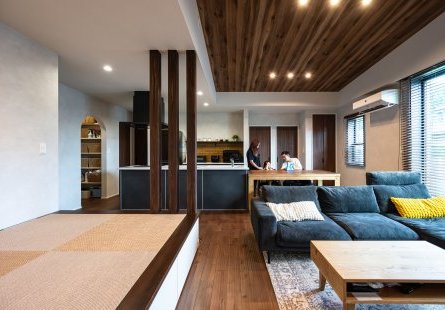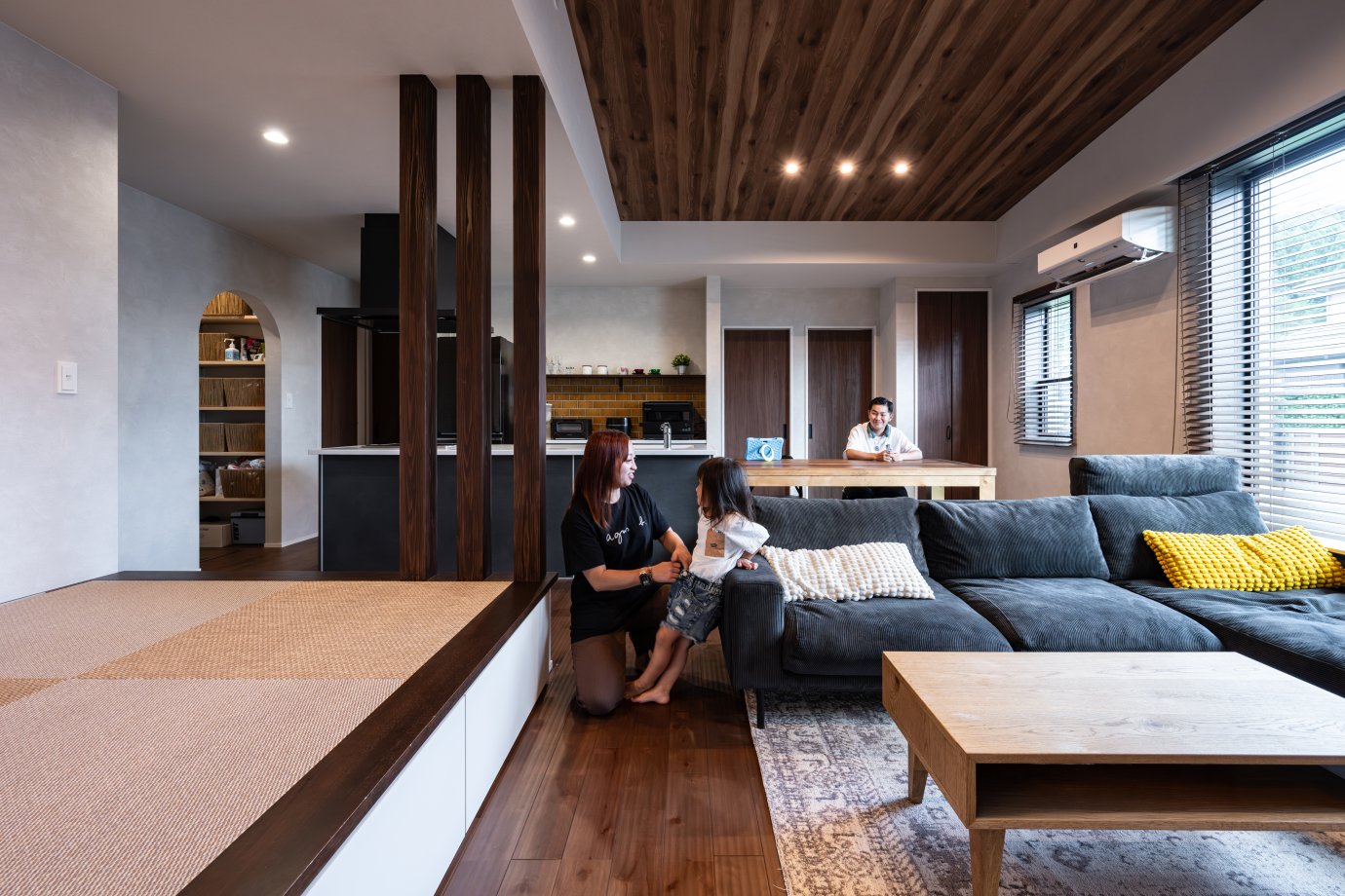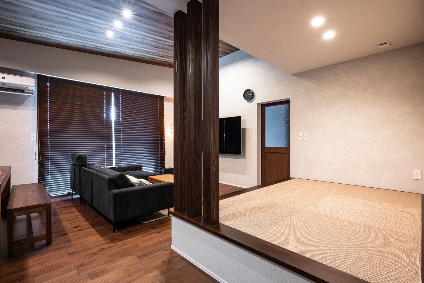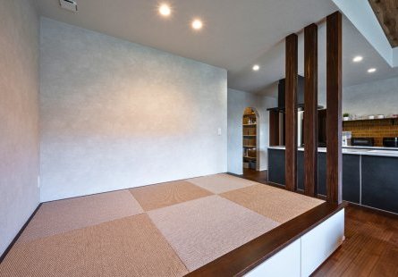 LDKの一角に設けたのは、伝統的な風合いと高い耐久性を兼ね備えたボロン畳のコーナー。