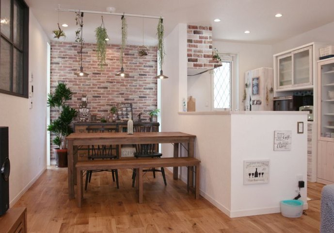 レンガ風の壁紙でアンティーク感のあるLDK。