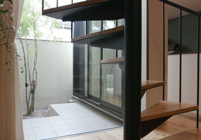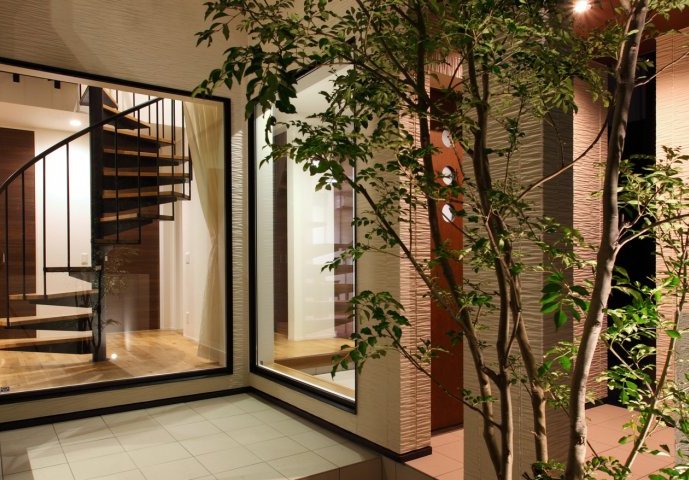 螺旋階段と中庭のある家