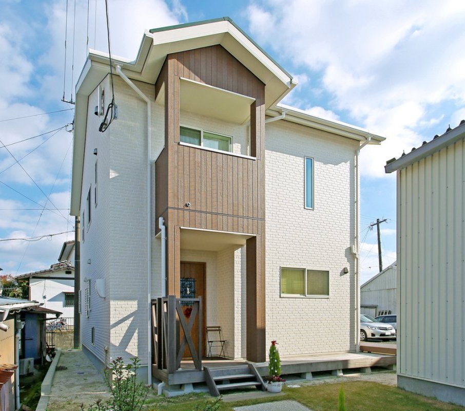 外観は、真っ白な壁に、ダークブラウンの木目がとても可愛らしいデザインです。