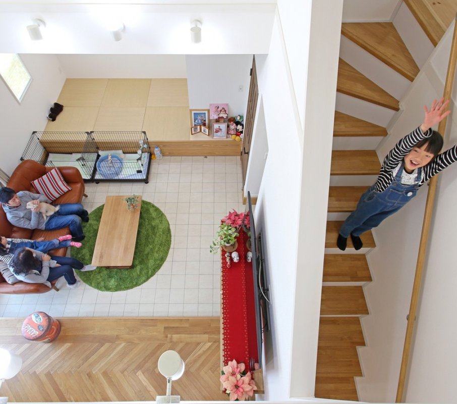 普段では考えつかないようなリビングと土間の融合という間取り。 それは家族を想う気持ちがあってこそ実現することです。