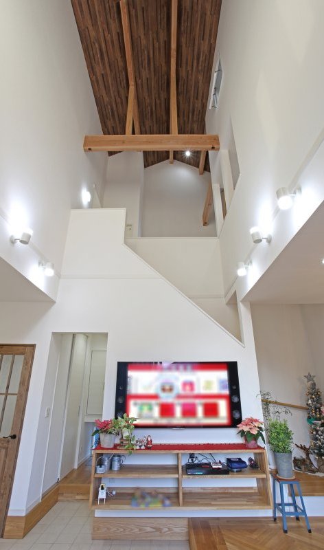 リビング真上の吹き抜けはオススメの間取りです。 せっかく家族が集まるスペースだから開放感ある吹き抜けで、皆さんゆったりとくつろいぎたいですよね。